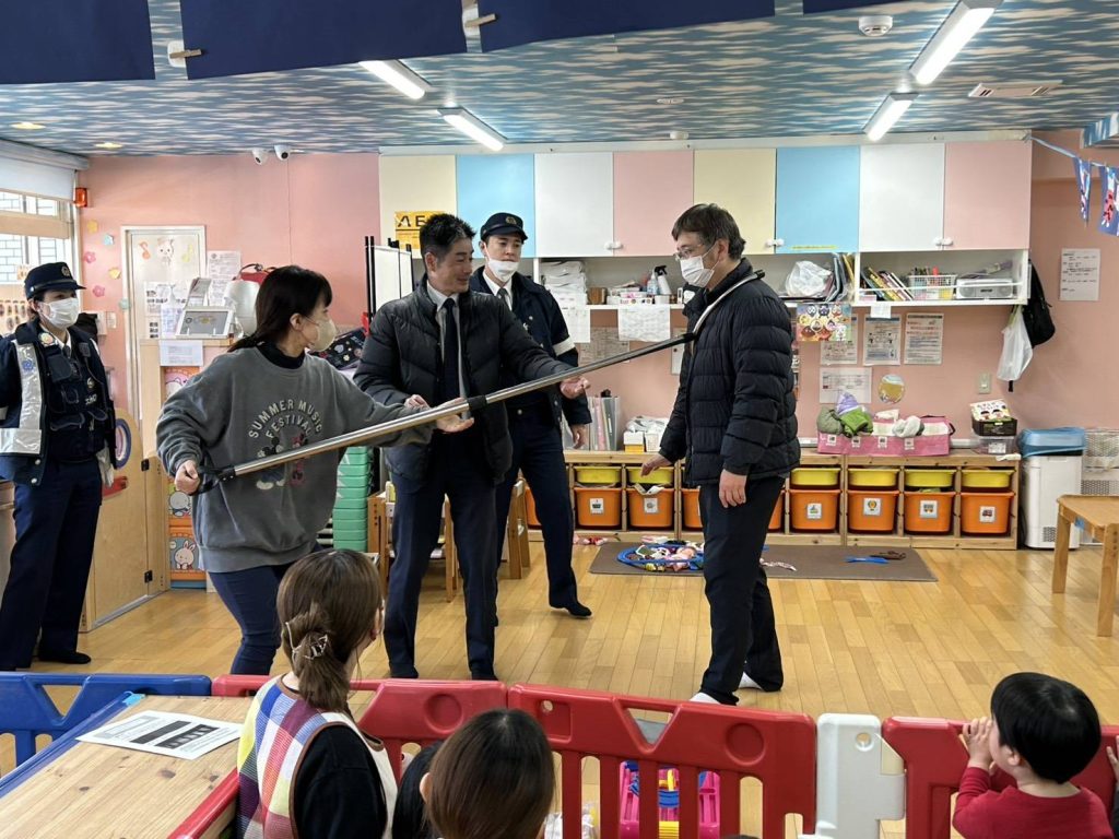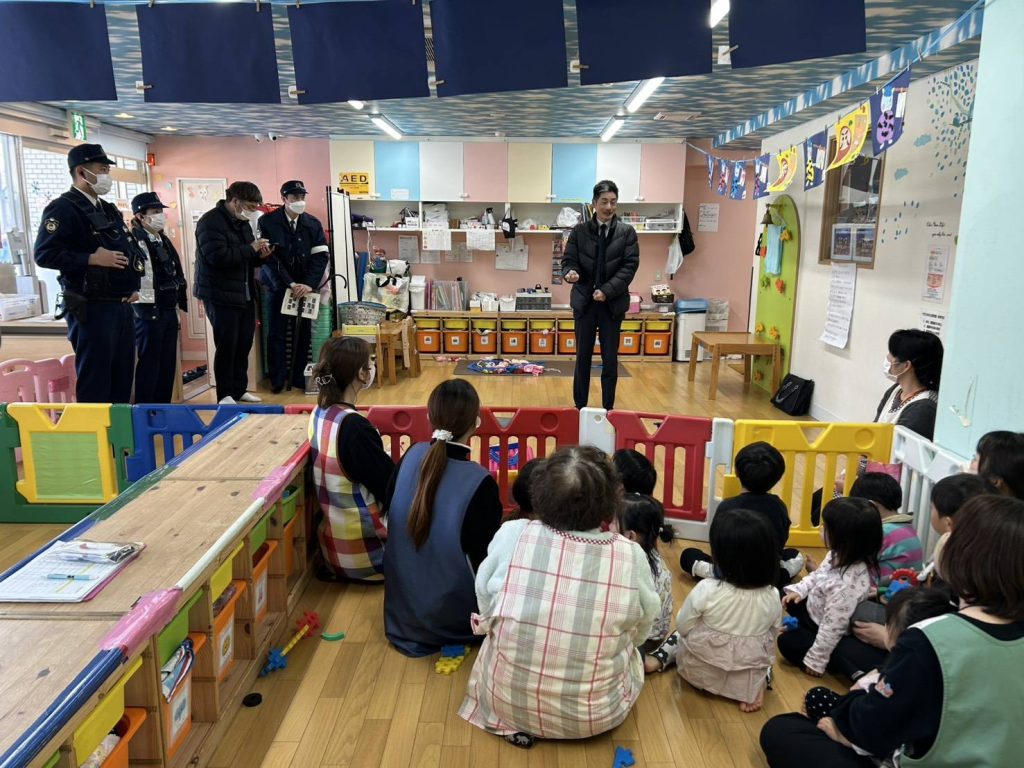 大分市ベビスボ大分保育園・不審者対応の研修を行い、警察官の方に来ていただきました。
